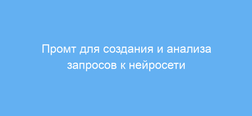 Этот промт предназначен для специалистов и пользователей, которые хотят создавать эффективные и оптимальные запросы к искусственному интеллекту. Если вы занимаетесь автоматизацией работы с нейросетями, разрабатываете шаблоны запросов или просто хотите повысить продуктивность взаимодействия с ИИ, этот промт станет полезным инструментом.