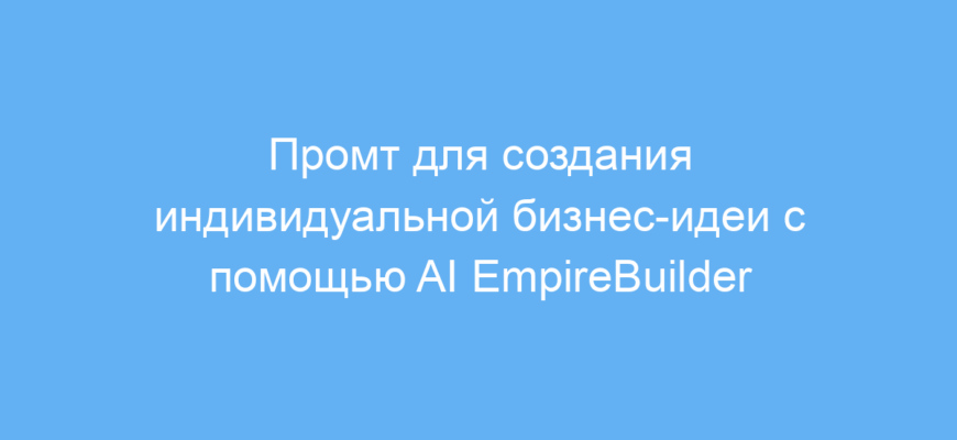 Промт задаёт ряд продуманных вопросов, чтобы понять ваши таланты, интересы и ресурсы. После ответов AI анализирует ваши данные и генерирует индивидуальную бизнес-стратегию с предложениями, где вы можете добиться успеха. Таким образом вы получаете готовый план, который поможет начать и развивать компанию в выбранной сфере.