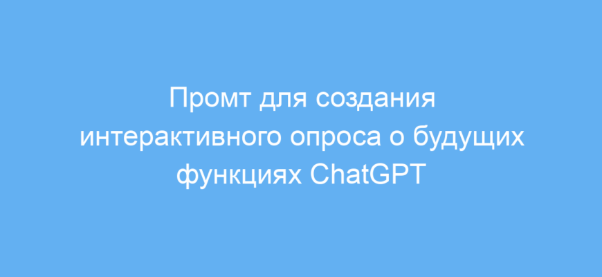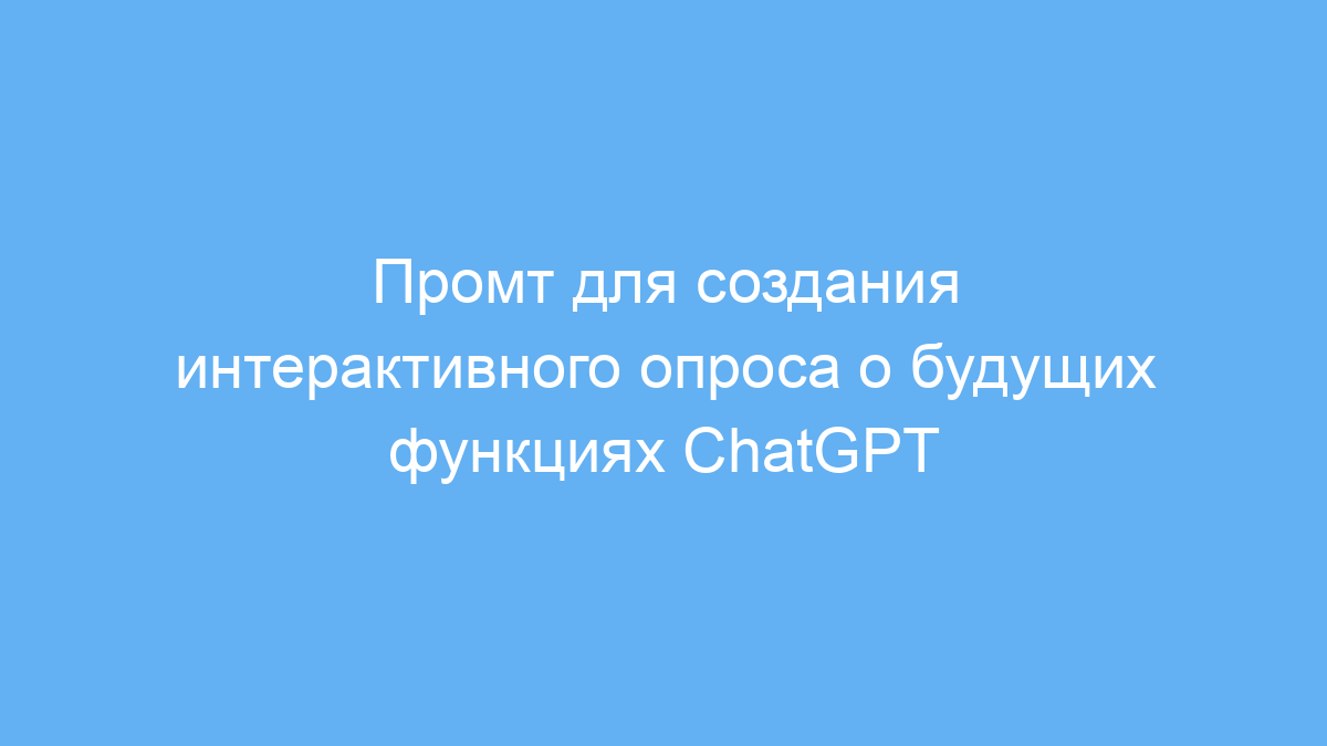 Этот промт предназначен для специалистов, разработчиков и пользователей нейросетевых инструментов, которые хотят познакомить аудиторию с предстоящими функциями ChatGPT в интерактивной форме В статье рассматривается, как с его помощью можно легко создавать вопросы с несколькими вариантами ответов для вовлечения и образовательных целей.