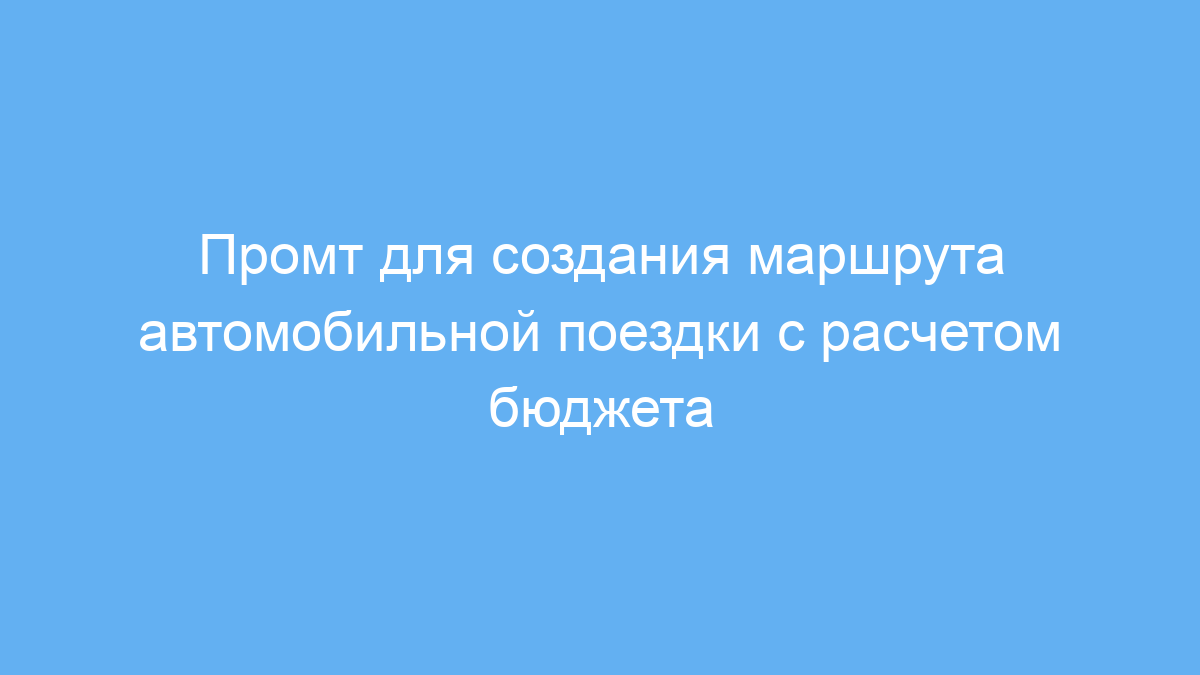 - промт оптимален для автомобильных поездок, но можно адаптировать и под другой транспорт, указав тип транспорта.
