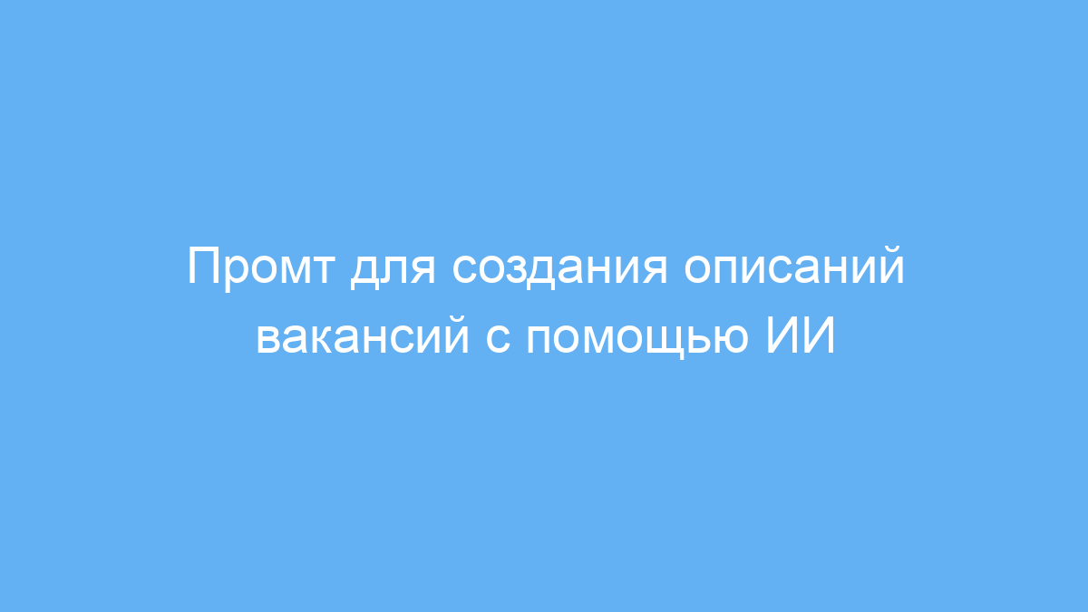 Проблема, которую решает промт, — это стандартность и однообразие вакансий, которые часто теряются на фоне конкурентов. С помощью ИИ можно получить уникальный, структурированный и понятный текст, который четко отражает требования и особенности работы.