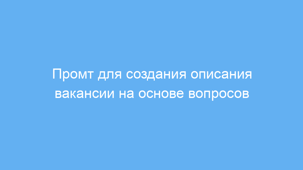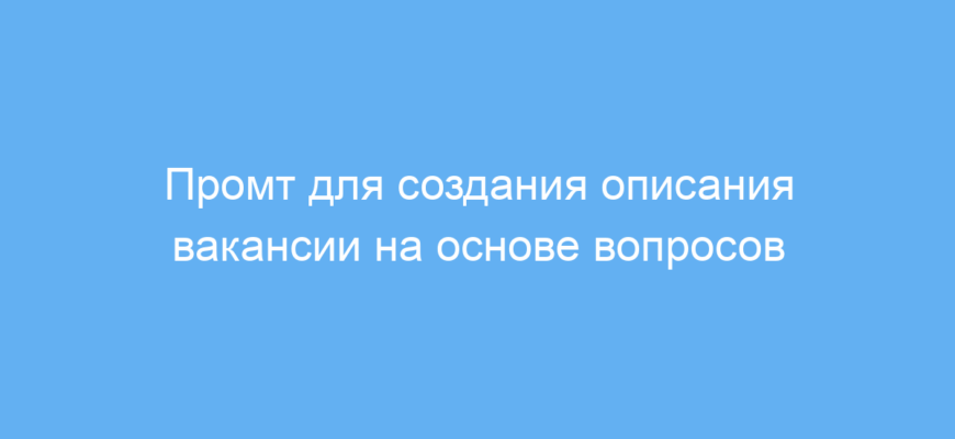 Промт работает просто: пользователь отвечает на ряд конкретных вопросов о вакансии и компании. На основе этих данных нейросеть формирует готовое, грамотно структурированное и удобное для копирования описание. Это упрощает процесс поиска сотрудников и помогает представить вакансию в выгодном свете.
