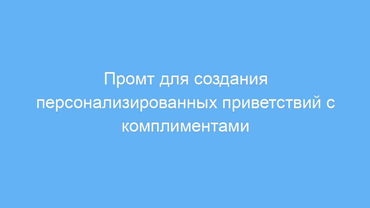 Данный промт предназначен для специалистов по маркетингу, HR, продажам и всем, кто взаимодействует с клиентами или партнёрами через электронные письма. Он помогает быстро создавать короткие, лаконичные и теплые приветствия с искренними комплиментами, основанными на информации о человеке и его компании.