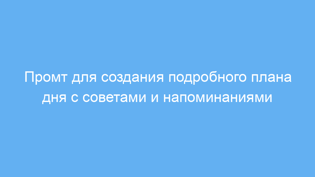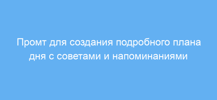 Чтобы получить максимально полезный и релевантный план дня, важно задать промт перед запросом, описав особенности пользователя или текущие задачи. Например, указать возраст, тип деятельности или предстоящие события.
