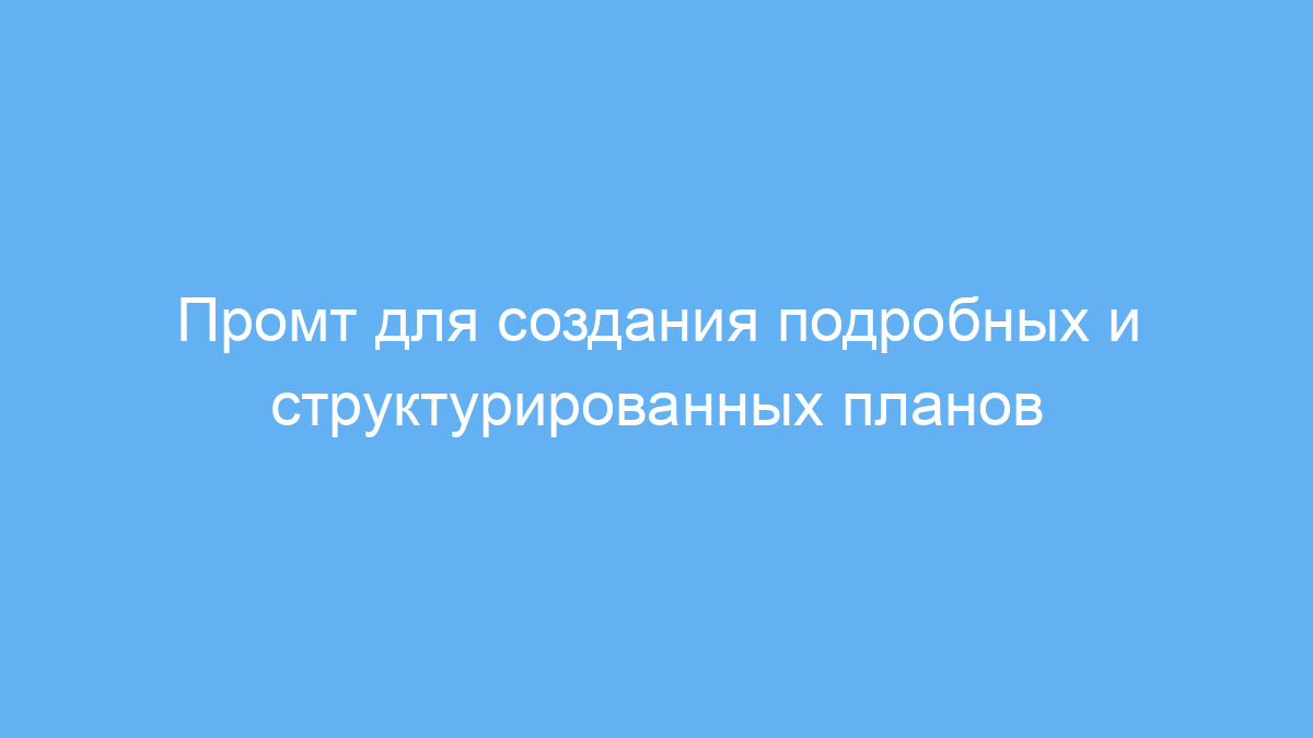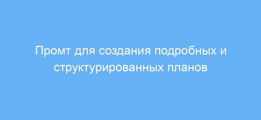 Этот промт нужен всем, кто хочет получить глубокий, детализированный и поэтапный план по любой выбранной теме. Он отлично подходит для студентов, профессионалов, организаторов проектов и создателей контента, которым важно структурировать информацию и разбить задачу на подробные шаги. Благодаря такой разбивке, работа становится более понятной и последовательной, а обучение или выполнение проекта — эффективнее.