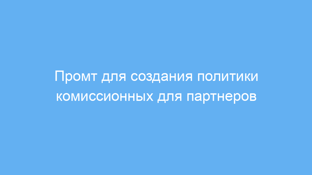Этот промт создан для владельцев бизнеса, маркетологов и менеджеров по работе с партнерами, которым необходимо разработать эффективную комиссионную политику. Он помогает систематизировать процесс создания программы комиссий, чтобы максимально мотивировать партнеров и контролировать затраты.