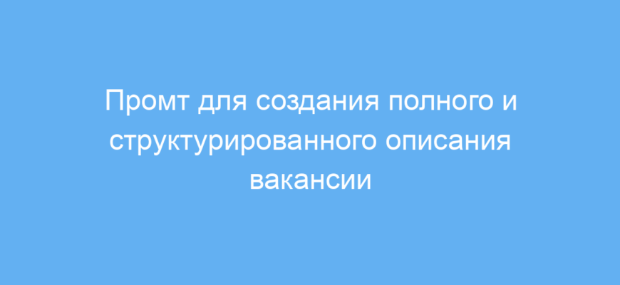 Этот промт значительно экономит время и силы при создании профессиональных описаний вакансий. Его использование позволяет структурировать данные, убрать ошибки и сделать текст понятным и привлекательным для потенциальных кандидатов. Это повышает шансы найти нужного сотрудника быстро и эффективно.