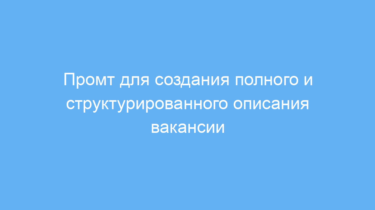 Промт решает проблему нехватки времени и идеальной структуры при создании вакансий. Вместо того чтобы писать описание с нуля, пользователь вводит данные по пунктам, а нейросеть формирует законченный текст. Это снижает вероятность ошибок и позволяет создавать привлекательные для соискателей вакансии.