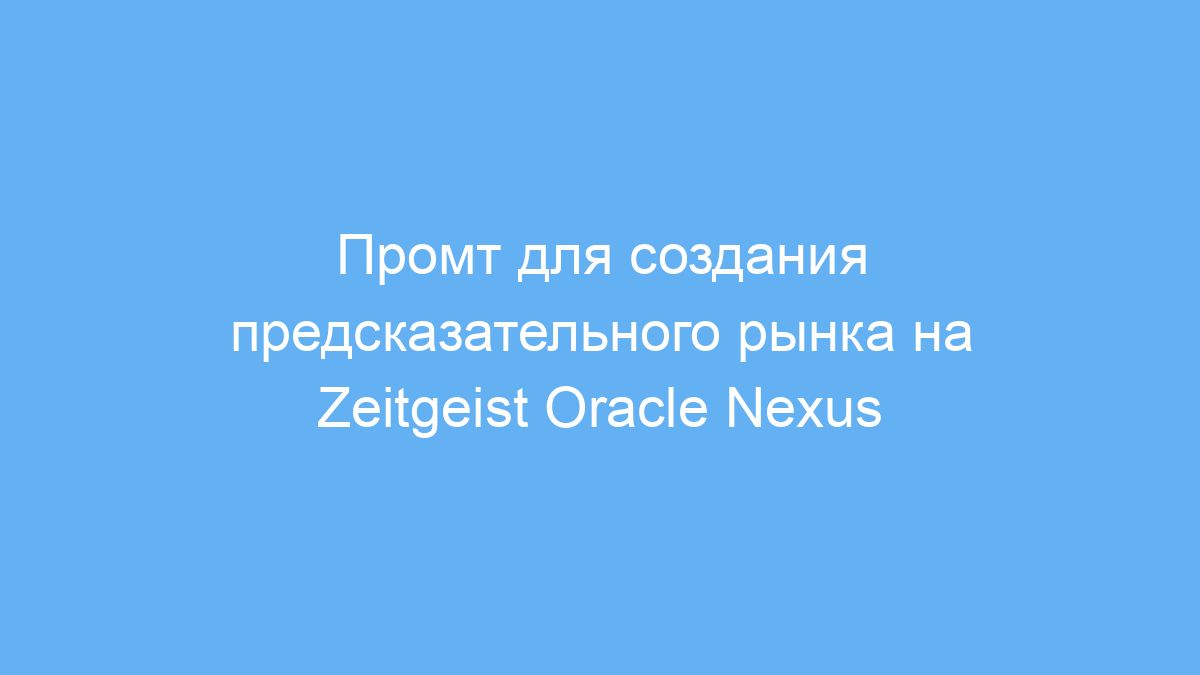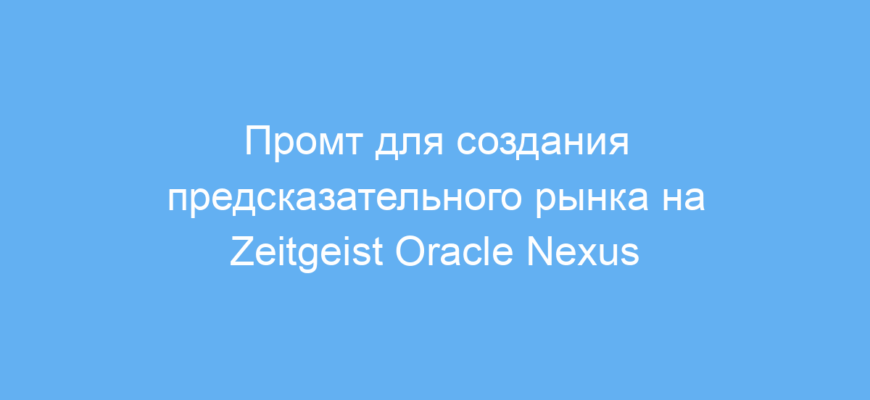 Этот промт предназначен для пользователей, желающих легко создать предсказательный рынок с помощью Zeitgeist Oracle Nexus. Если вы работаете с криптовалютами, политикой, спортом или наукой и хотите формализовать свои прогнозы в виде рынка, этот промт поможет построить структуру с пошаговыми инструкциями.