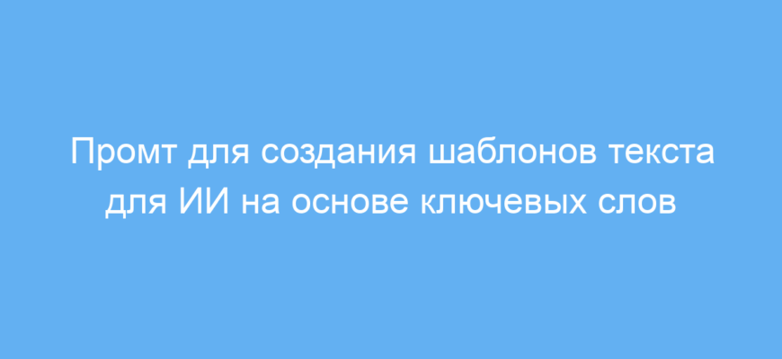 Проблема, которую решает этот промт — создание четких и структурированных шаблонов. Вместо сложных и запутанных инструкций вы получаете готовую схему с ключевыми словами, примерами, форматированием и необходимыми тегами. Это облегчает настройку и повышает точность генерации текстов нейросетью.