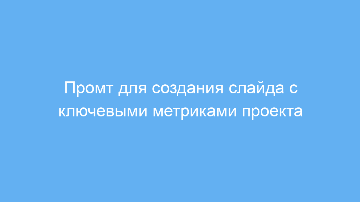 Принцип работы промта — он направляет нейросеть создать чистую и современную визуализацию в формате слайда, используя основные показатели проекта. Слайд оформляется как дашборд — так, чтобы пользователь получил минималистичную и удобную структуру, быстро воспринимаемую аудиторией.