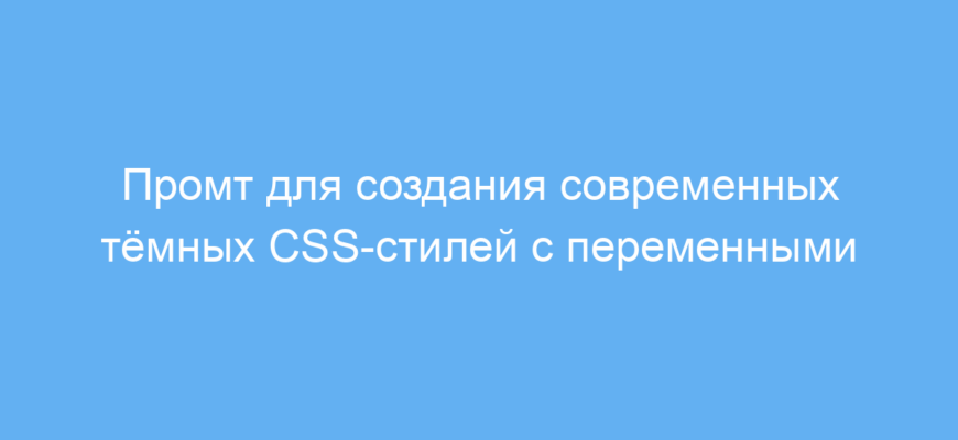Использование данного промта помогает быстро и удобно создавать унифицированные тёмные темы для разных компонентов. Он экономит время дизайна и разработки, обеспечивая гибкость и единый стиль интерфейса благодаря применению CSS-переменных. Такой подход упрощает масштабирование и поддержку больших проектов.