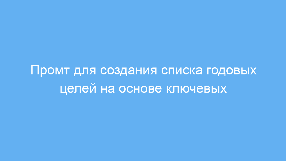 Этот промт предназначен для предпринимателей, руководителей и менеджеров, которые хотят структурировать свои цели на оставшующееся время в году с учётом важных ориентиров: ключевых результатов, трёхлетнего видения и текущей ситуации бизнеса и личной жизни. Он помогает перейти от общего понимания стратегических задач к конкретным, реалистичным и измеримым годовым целям, которые способствуют достижению больших результатов.