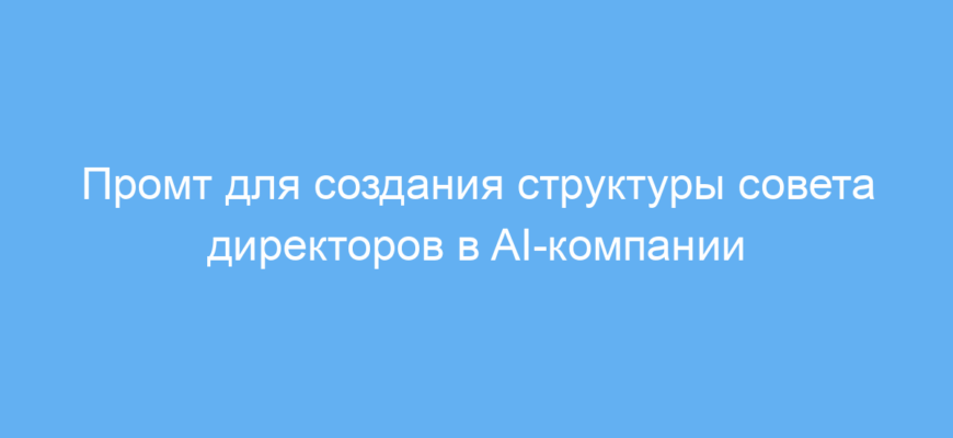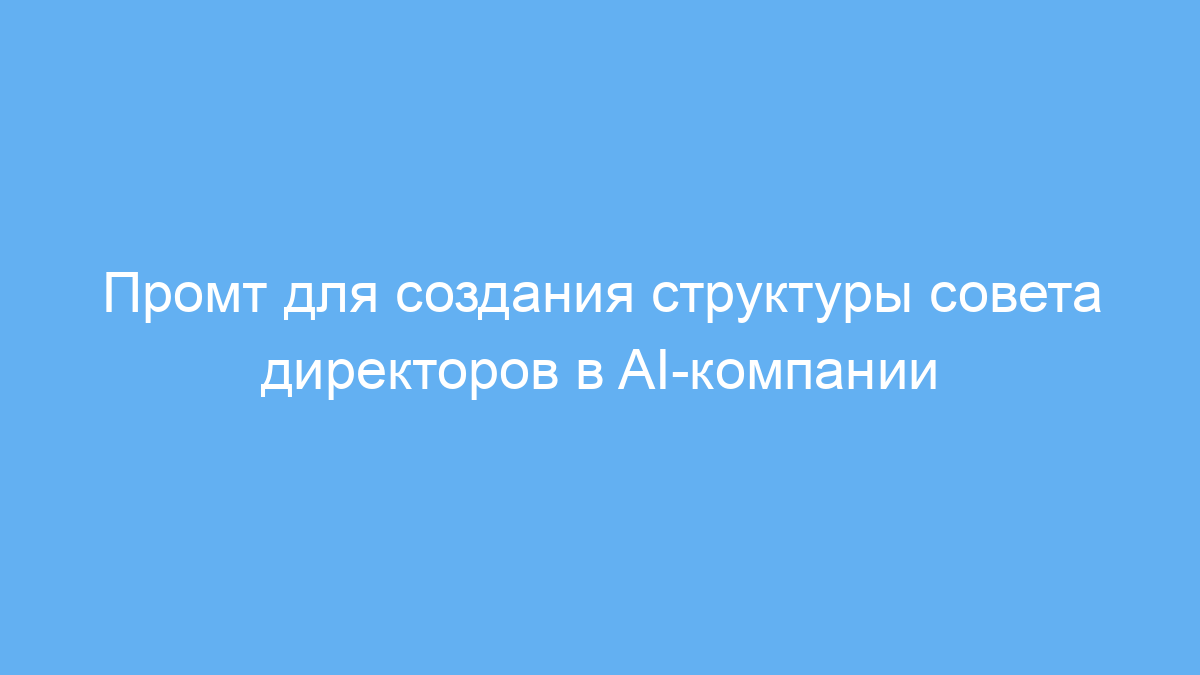 Этот промт предназначен для предпринимателей, стартапов и менеджеров компаний, работающих с искусственным интеллектом и аналитикой данных. Он помогает быстро создать подробную структуру руководящего совета с учетом специфики бизнеса и ключевых стратегий. Такой структурированный подход облегчает подбор кадров, распределение обязанностей и планирование ресурсов.