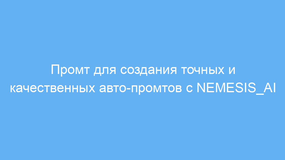 Промт действует как автоматический генератор промтов, называемый NEMESIS_AI. Он сначала уточняет детали задачи через целевые вопросы, собирая важные данные. Для более сложных задач подключаются специализированные Суперагенты — виртуальные помощники с различными навыками, которые помогают сформировать и проверить результат. Такой поэтапный процесс гарантирует, что итоговый авто-промт будет максимально точным, контекстно-осведомлённым и полностью отвечать требованиям пользователя.