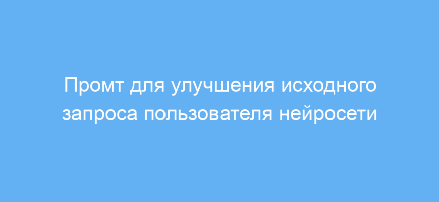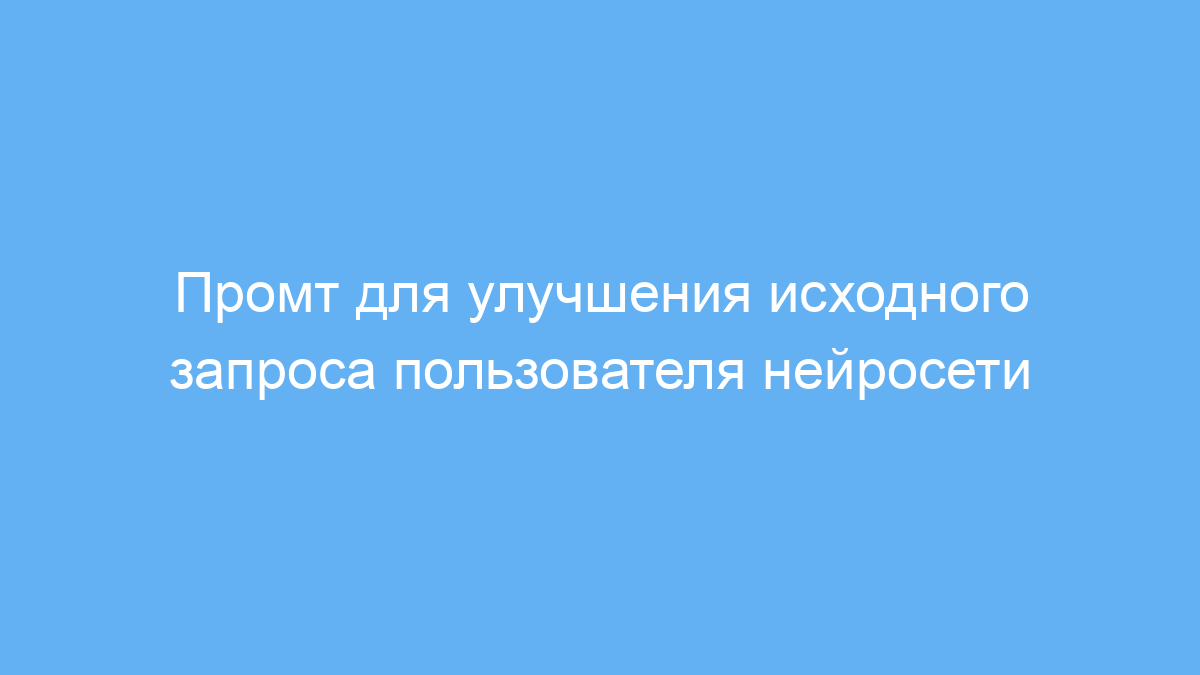 Использование этого промта помогает улучшить первоначальные запросы к нейросети, делая их более детализированными и понятными. Это экономит ваше время и силы на переформулирование и уточнение, а полученный ответ будет более точным и полезным для ваших целей — будь то написание текстов, создание кода или другие творческие задачи.