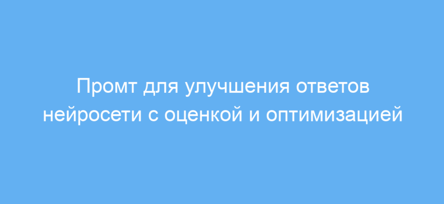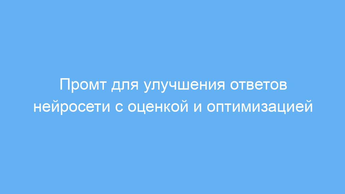 Этот промт помогает добиться максимально точных и глубоких ответов от нейросети благодаря системному анализу и поэтапной оптимизации. Он снижает необходимость в ручной корректировке и учит ИИ улучшать себя, экономя время пользователей и повышая качество информации.