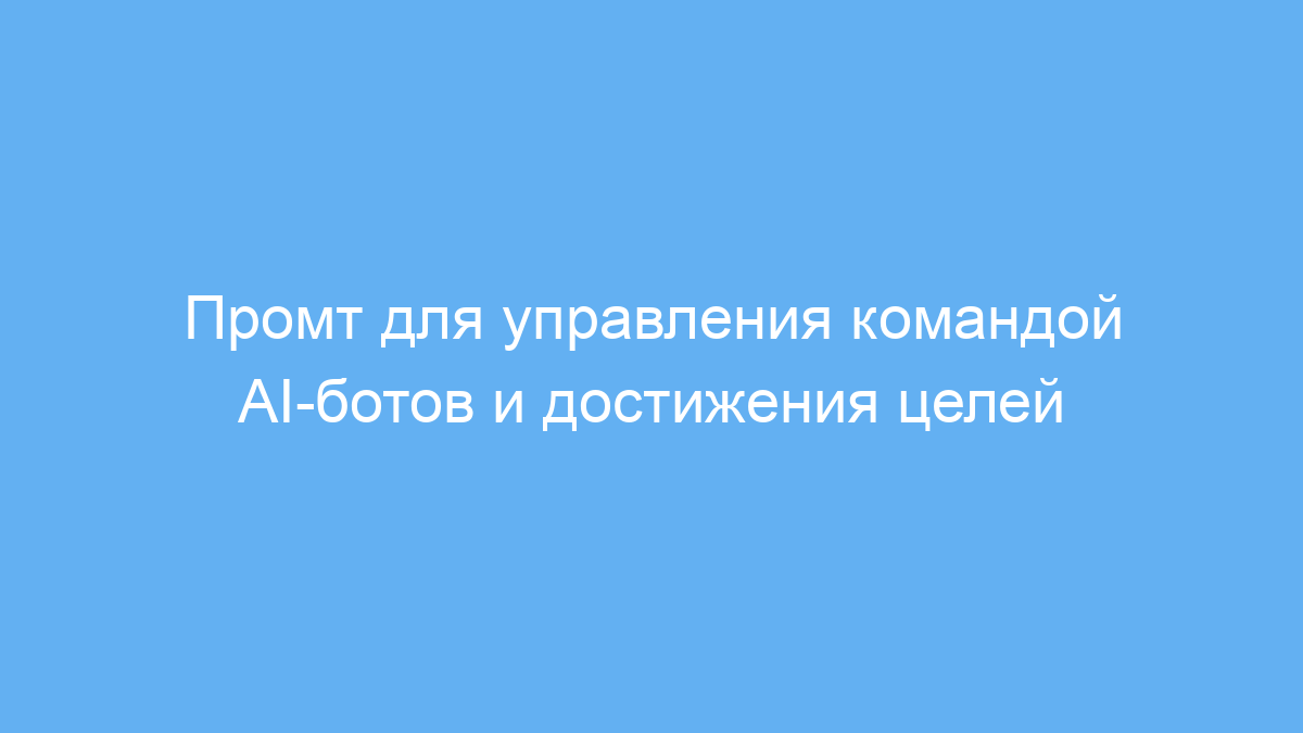 Этот промт существенно экономит время и силы, позволяя автоматически распределять задачи между профильными AI-ботами и получать качественный, проверенный результат. Он помогает системно подходить к сложным задачам и добиваться целей с помощью высококвалифицированной работы искусственного интеллекта.