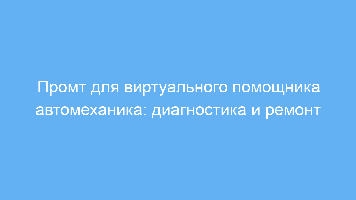 Промт работает как виртуальный эксперт, который анализирует данные о транспортном средстве (VIN, марка, модель, пробег), изучает отзывы и рекомендации производителей, а также ищет актуальные цены на запчасти и материалы на популярных ресурсах. Он формирует детализированное техническое задание для ремонта, включая инструменты, расходники и дополнительные услуги. За счёт структурированного подхода механик получает систематизированную и полную информацию, что сокращает время на поиск и повышает качество диагностики.