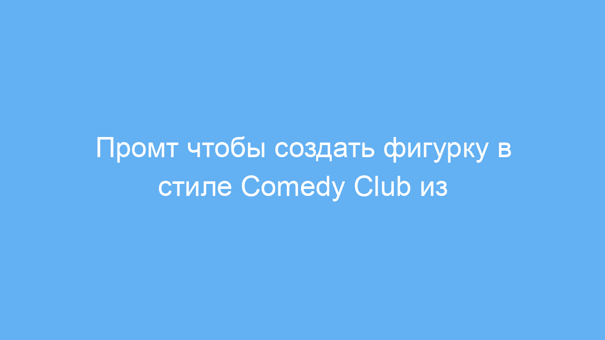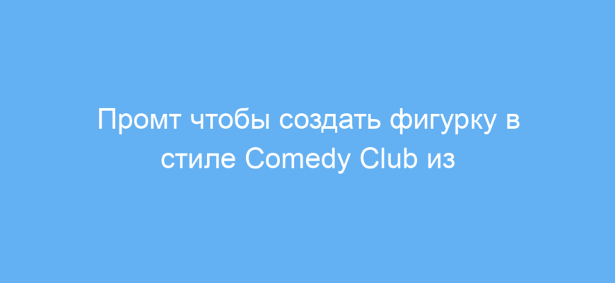 Этот промт помогает быстро получить эффектное и тематическое изображение фигурки, идеально вписывающейся в атмосферу Comedy Club. Он сокращает время на дизайн, позволяет создать индивидуальное оформление с персональным текстом и подходит для подарков, рекламы и визуальных проектов.