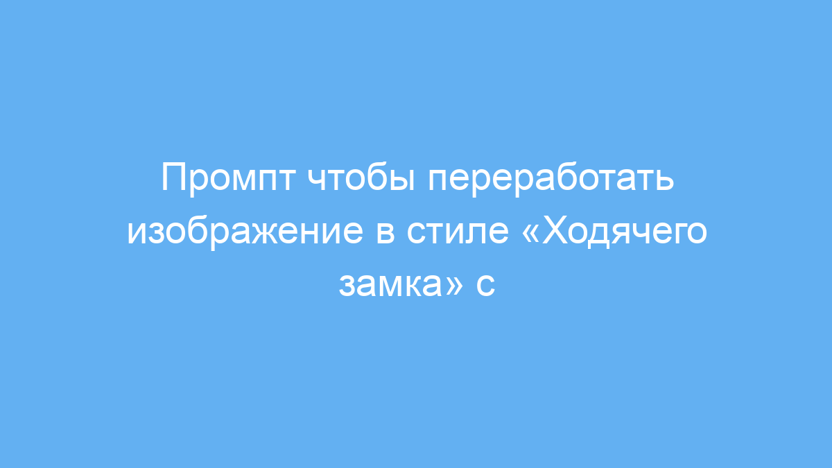Этот промпт упрощает создание сложных иллюстраций с атмосферным фоном и эффектами, вдохновлёнными стилем «Ходячего замка». Он экономит время, помогает добиться профессионального результата и расширяет творческие возможности, делая работы более выразительными и визуально привлекательными.