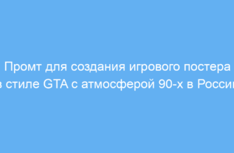 Данный промпт значительно упрощает процесс создания уникального арт-образа в культовом стиле игры Grand Theft Auto, адаптированного под специфическую российскую эпоху и местность. Это экономит время и помогает быстро получить эффектные визуальные материалы для проектов, связанных с темой 90-х и городской субкультурой.