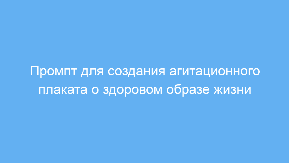 Этот промпт предназначен для дизайнеров, маркетологов, педагогов и всех, кто хочет быстро создать агитационный плакат с призывом к здоровому образу жизни. Он помогает формировать точное текстовое и визуальное задание для нейросетей, которые генерируют изображения и графику. Благодаря такому промпту вы экономите время на составление брифа и получаете подходящий постер без лишних правок.