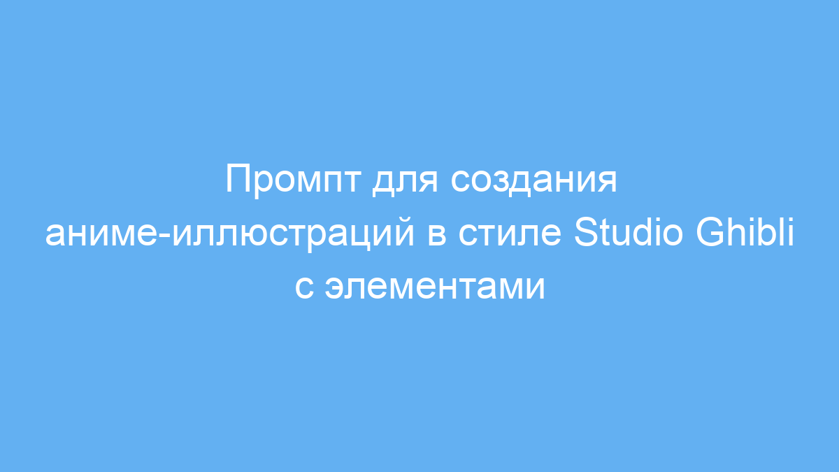 Этот промпт создан для художников, дизайнеров и любителей, которые хотят преобразовать обычную фотографию в уникальный аниме-стиль, напоминающий картины Studio Ghibli с добавлением советской и ретро-атмосферы. Он помогает быстро создавать визуально привлекательные и атмосферные изображения без глубоких знаний в области рисования или редактирования.