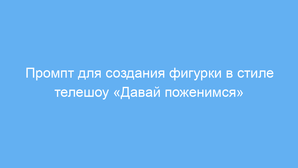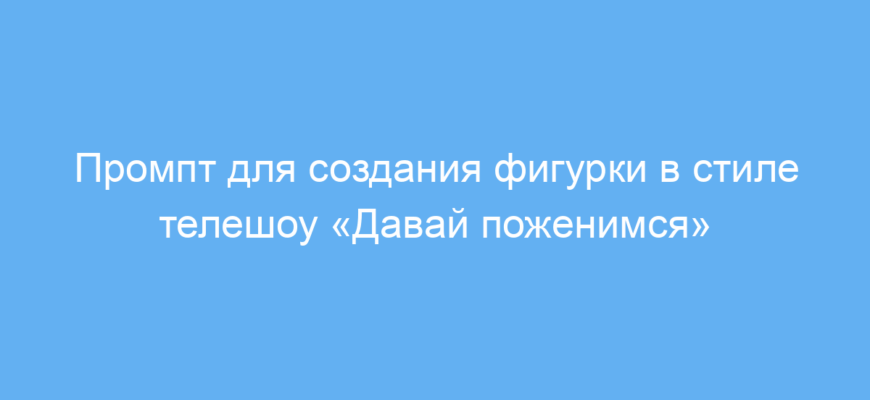 Этот промпт предназначен для тех, кто хочет сгенерировать качественное изображение пластиковой фигурки по фотографии, оформленной в фирменном стиле популярной телепередачи «Давай поженимся». Он полезен для дизайнеров, маркетологов, блогеров и всех, кто занимается созданием уникального контента или презентаций. Благодаря этому промпту можно быстро получить готовую концепцию оформления сувенира, рекламного материала или креативного подарка.