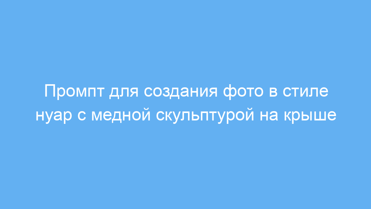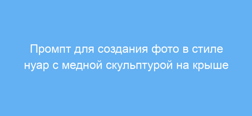 Этот промпт подойдет дизайнерам, художникам, контент-мейкерам и всем, кто хочет быстро получить качественное изображение с атмосферой нуара. Он помогает создать уникальное фото с медной скульптурой человека на крыше небоскреба в Нью-Йорке, причем с возможностью добавить любой текст на табличке. Такой подход экономит время и позволяет легко визуализировать идеи для проектов, презентаций или соцсетей.