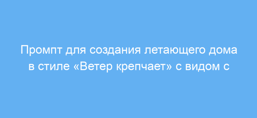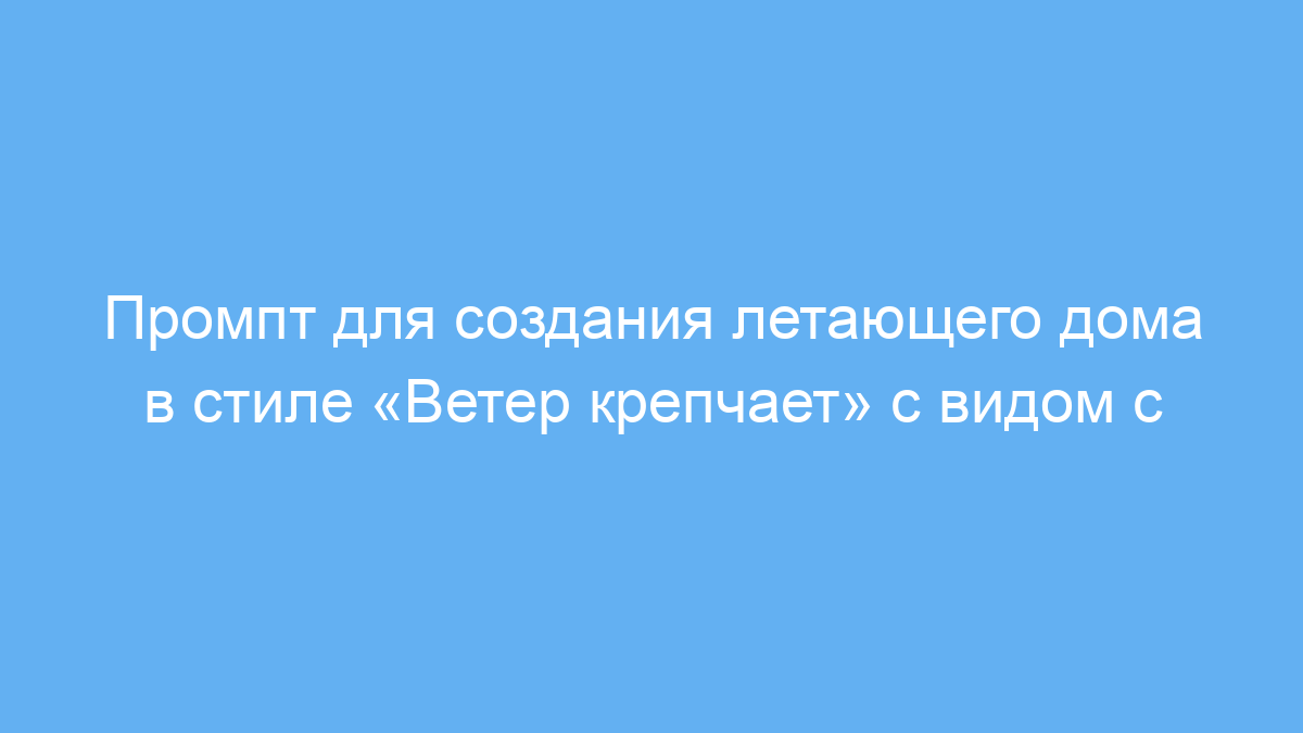 Этот промпт предназначен для пользователей нейросетей, которые хотят преобразить свои фотографии и создать уникальные образы в стиле реалистичной анимации. В частности, он помогает превратить обычное фото в изображение, на котором пользователь будто живёт в летающем доме, окружённом облаками и горами, напоминающем атмосферу фильма «Ветер крепчает».
