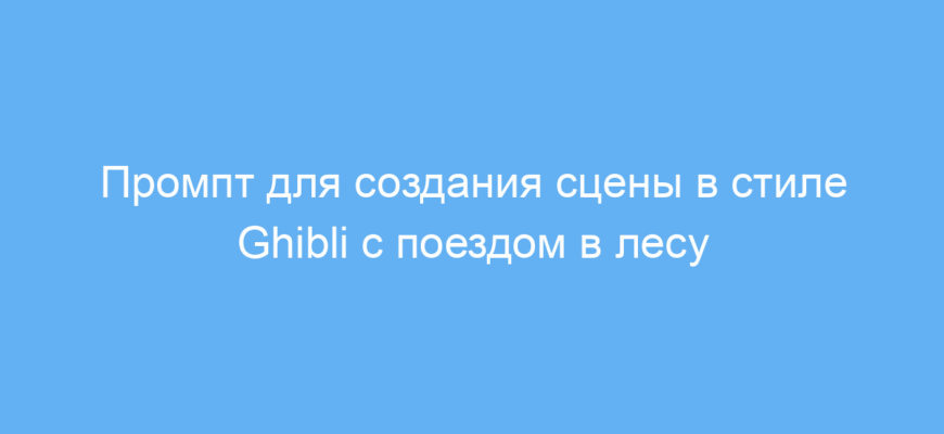 Этот промпт подходит художникам, дизайнерам, писателям и всем, кто использует нейросети для создания атмосферных иллюстраций или текстов. Он помогает быстро получить образ сцены с поездом, окружённым лесом в стиле знаменитых анимационных фильмов студии Ghibli. Если нужно представить тёплую, уютную атмосферу с детализированными природными элементами, этот промпт ускорит процесс и сделает результат более выразительным.