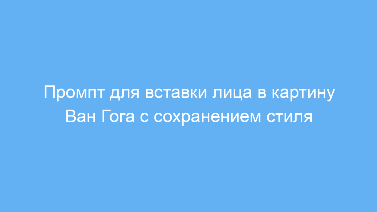 С помощью этого промпта вы быстро и легко создадите персонализированное художественное произведение в стиле Ван Гога без специальных навыков рисования. Он поможет сохранить художественные особенности и настроение оригинальной картины, добавив в неё индивидуальность.