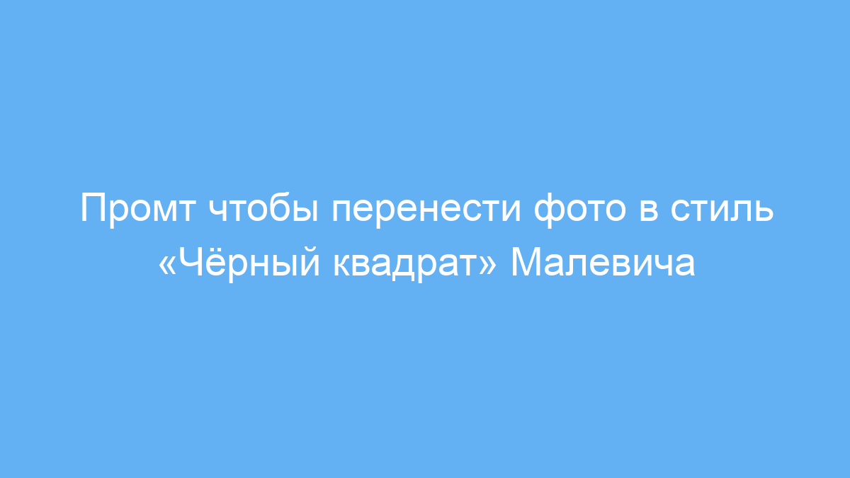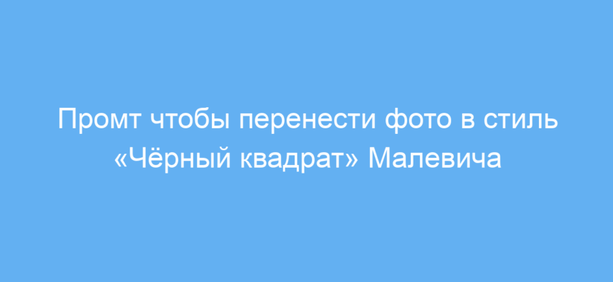 Промт даёт нейросети чёткие инструкции: сохранить элементы изображения, но переосмыслить их в духе «Чёрного квадрата», с акцентом на минимализм и контраст. За счёт этого результат выглядит стильно и современно, избегая излишних деталей.