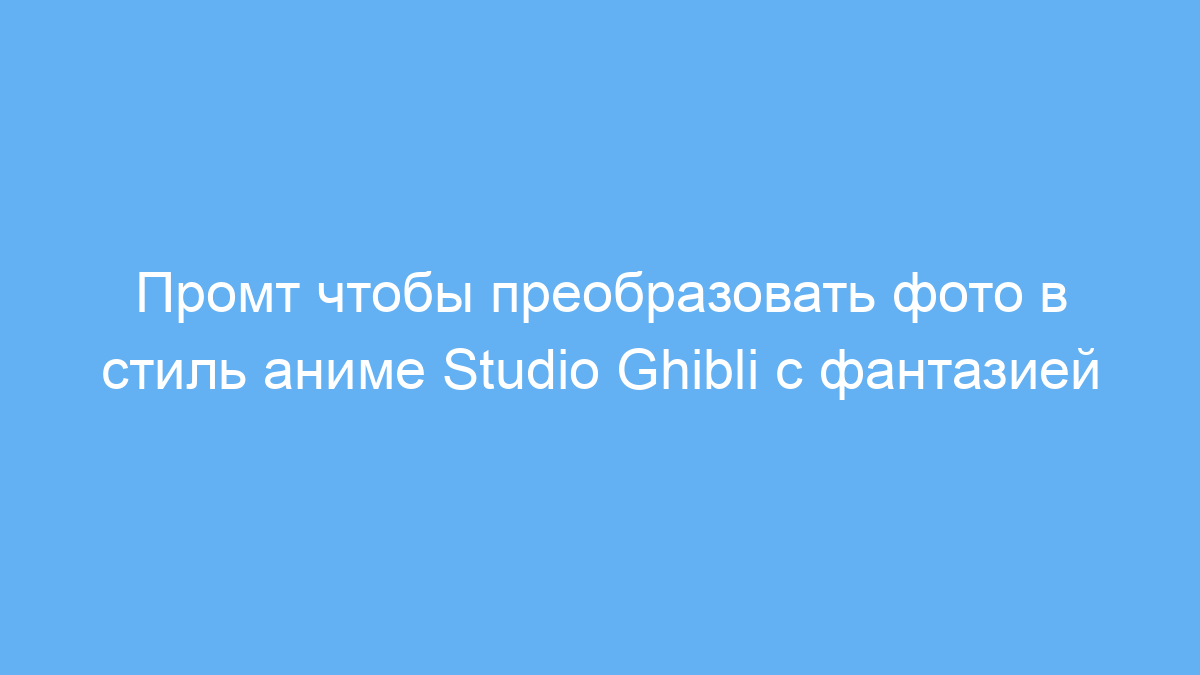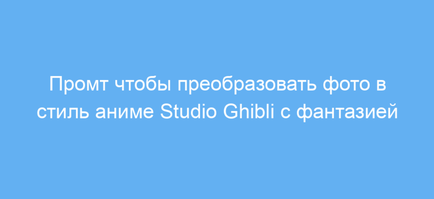 Этот промт помогает быстро создавать красивые изображения в популярном стиле аниме Studio Ghibli с фантазийными и ретро элементами. Он значительно упрощает работу над проектами, позволяя получить необычные результаты без специальных навыков графического дизайна.