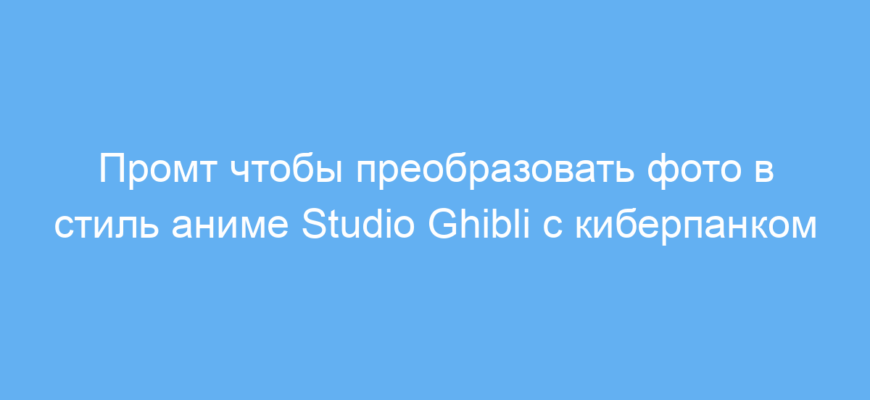 Данный промт позволяет быстро и удобно создать уникальный аниме-образ с атмосферой Studio Ghibli и киберпанковскими элементами, что экономит время и усилия на ручную прорисовку и поиски стиля. Это отличный инструмент для экспериментов в дизайне, иллюстрациях и контенте.