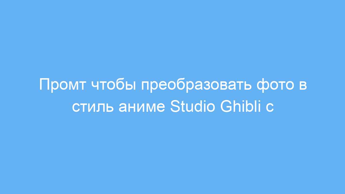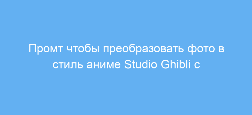 Промт работает с нейросетями, которые обрабатывают исходное фото и перерисовывают его в заданной стилистике. Он направляет нейросеть использовать характерные для Studio Ghibli цвета, композицию и детали, делая итоговое изображение гармоничным и узнаваемым.