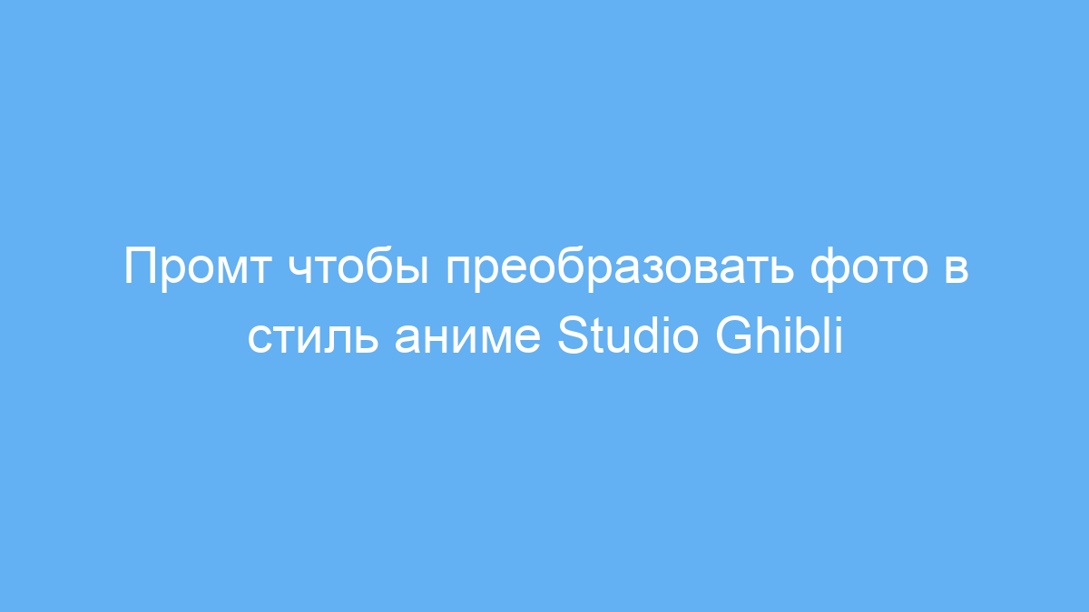 Этот промт подойдет тем, кто хочет быстро и легко превратить обычную фотографию в изображение в стиле знаменитой анимации Studio Ghibli. Особенно полезен создателям контента, дизайнерам, маркетологам и просто любителям аниме, желающим добавить творческий и ностальгический эффект к своим изображениям.