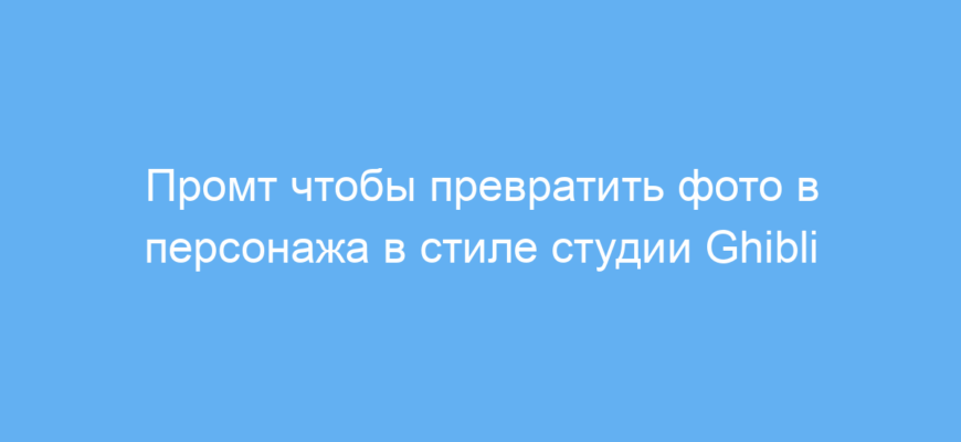 Этот промт подходит художникам, дизайнерам, блогерам и всем, кто хочет преобразить своё фото в уникальный образ в стиле анимации студии Ghibli. Он помогает быстро создавать иллюстрации с мягкими пастельными оттенками и атмосферой волшебства, что особенно полезно для оформления проектов, соцсетей или подарков.