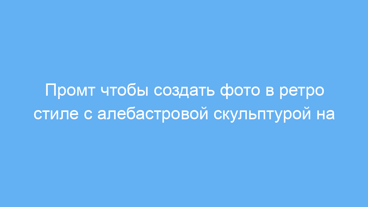 Данный промт предназначен для пользователей нейросетей, которые хотят получить уникальное изображение в ретро стиле. Он помогает визуализировать алебастровую скульптуру человека, размещённую на вокзале в Вене, с возможностью добавить индивидуальную надпись. Такой инструмент полезен дизайнерам, маркетологам и творческим специалистам, которые нуждаются в необычных и атмосферных картинках для проектов, рекламы или учебных материалов.