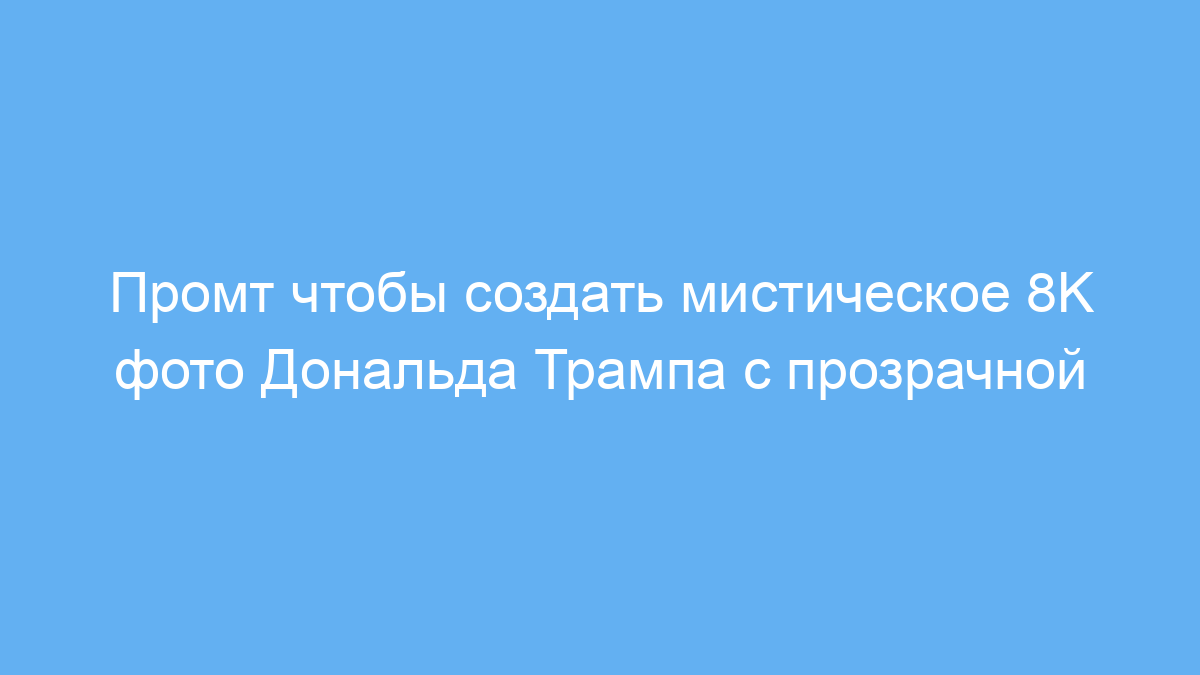 Этот промт предназначен для пользователей нейросетей, которые хотят получить качественное, детализированное и атмосферное изображение Дональда Трампа в уникальной мистической обстановке. Он полезен дизайнерам, маркетологам, создателям контента и любителям цифрового искусства, которым требуется высококачественная и выразительная картинка для проектов, презентаций или вдохновения.