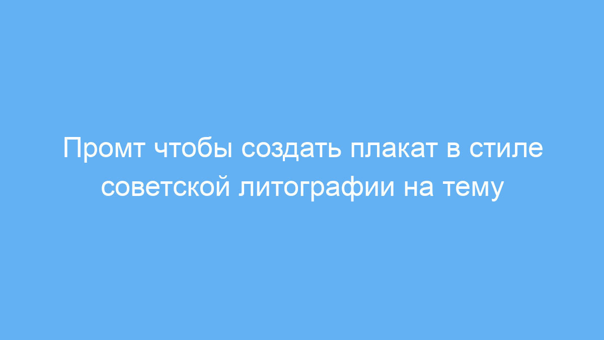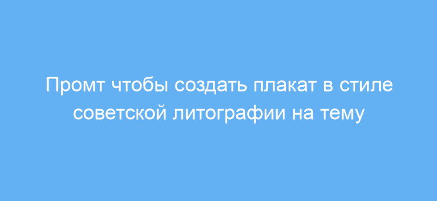 Этот промт помогает быстро получить качественное изображение плаката в уникальном художественном стиле советской литографии с чётко заданной темой и элементами. Он экономит время, упрощает работу с визуальным контентом и позволяет создавать привлекательные и запоминающиеся постеры без глубоких художественных знаний.
