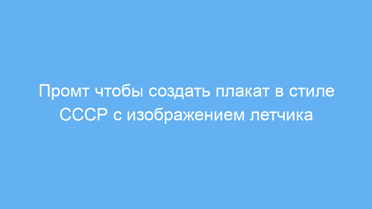 Работает промт следующим образом: пользователь задаёт параметры — стиль (СССР), сюжет (летчик, самолёт, облака), цветовую палитру (сине-красные тона) и ракурс. Указание модели самолёта позволяет нейросети сделать изображение детализированным и точным. В итоге генератор создаёт готовый плакат, который можно использовать в любых целях.