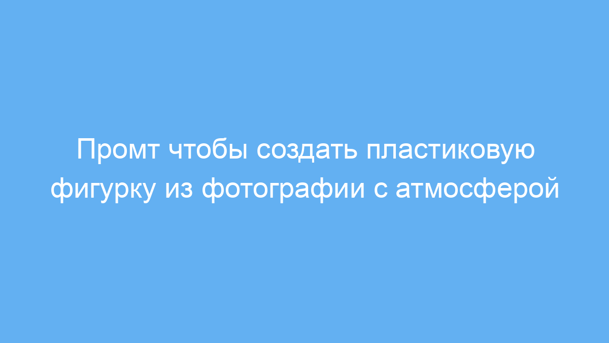 Этот промт значительно упрощает создание продуманной и эмоционально насыщенной сцены с пластиковой фигуркой. Он экономит время на детальное описание композиции и помогает быстро получить реалистичный визуальный продукт, который отлично подходит для подарков, рекламы и презентаций.