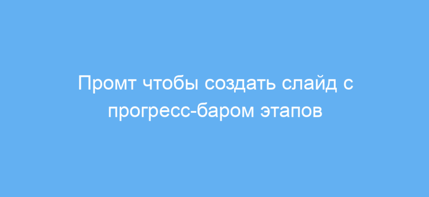 Этот промт упрощает создание наглядных и стильных слайдов с прогресс-барами для разных проектов. Он экономит время, помогает лучше донести информацию и визуализировать текущий статус этапов. Особенно полезен для тех, кто часто готовит презентации и отчёты.