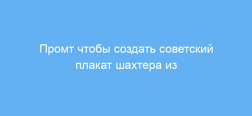 Промт обращается к нейросети, которая преобразует исходное фото: применяет темные тона и яркие акценты, характерные для советского плаката, а также добавляет название шахты в дизайн для персонализации изображения. Использование готового промта экономит время и упрощает процесс создания стилистического плаката без необходимости детальной настройки каждого параметра.