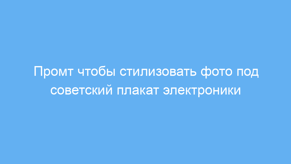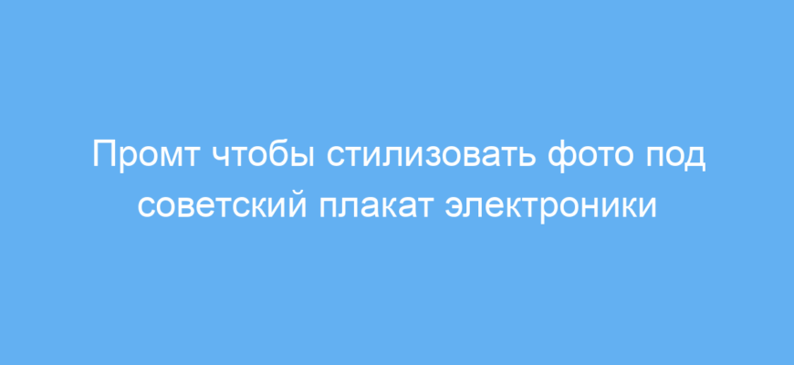 Промт работает с нейросетями, генерирующими изображения. При его применении исходное фото преобразуется в графику, напоминающую плакаты того времени, с акцентом на характерные детали электроники и стилизованный пиксельный текст «ТЕХНОЛОГИИ ДЛЯ НАРОДА!». Это помогает быстро создавать эффектные визуальные материалы для рекламы, соцсетей или образовательных проектов по истории техники.