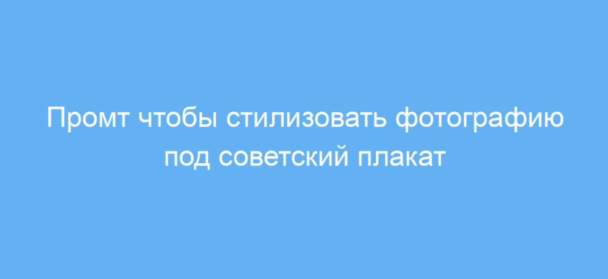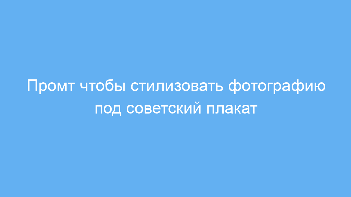Этот промт предназначен для тех, кто хочет быстро и легко преобразовать обычную фотографию в изображение в стиле советского плаката. Он помогает добавить ретро-атмосферу с характерными сине-красными оттенками и фильтрами. Такой подход отлично подходит дизайнерам, маркетологам, художникам и блогерам, которые хотят создать уникальное оформление для своих материалов. Промт решает задачу стилизации изображения, превращая его в яркий и запоминающийся арт, что экономит время на ручной доработке и подборе цветов.