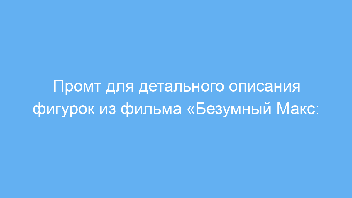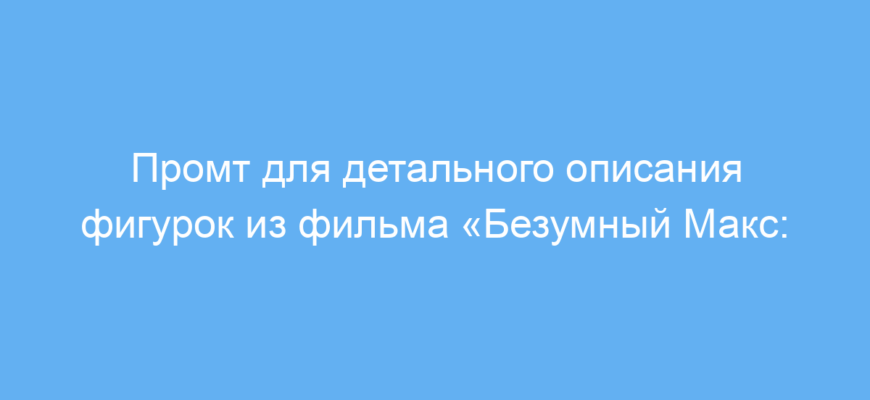 Этот промт предназначен для создателей контента, маркетологов, коллекционеров и всех, кто хочет получить детальное и яркое описание миниатюрных фигурок из популярных фильмов. В данном случае — из фильма «Безумный Макс: Дорога ярости». Использование промта помогает быстро и качественно оформить описание товара или коллекционного предмета, подчеркнуть уникальные детали и атмосферу, что важно для интернет-магазинов, каталогов и выставочных материалов.