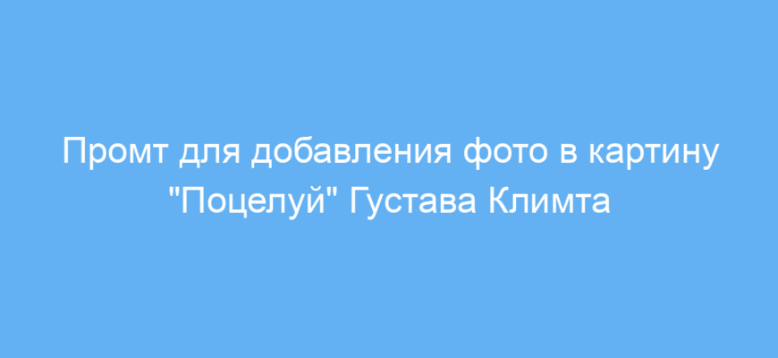 Принцип работы прост: вы загружаете фото и отправляете его вместе с текстом промта в нейросетевой генератор изображений. Нейросеть анализирует фото, стилизует его под характерные особенности «Поцелуя» (золотая цветовая гамма, плавные линии, романтика), и вы получаете готовую картинку с вашим лицом в художественном контексте.